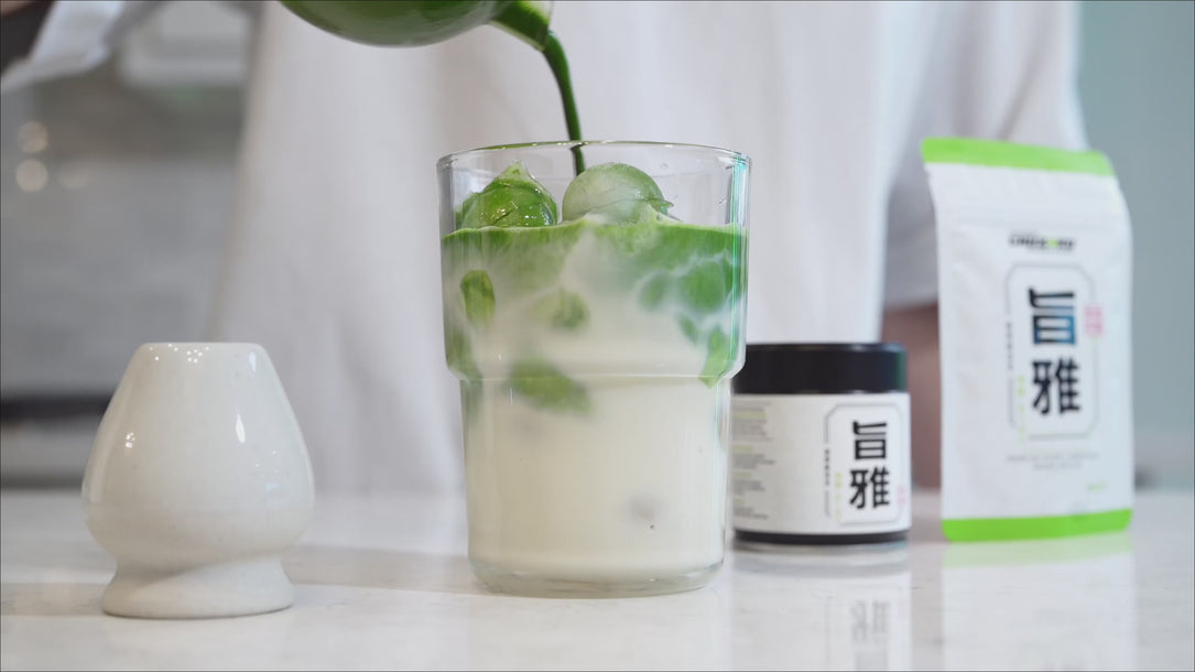 For matcha latte, blend 2 tsp with 60ml hot water and top with 200ml of a milk base of your choice. Avoid boiling water, as it will mask the matcha's subtle aromatics and "burn" the matcha.
